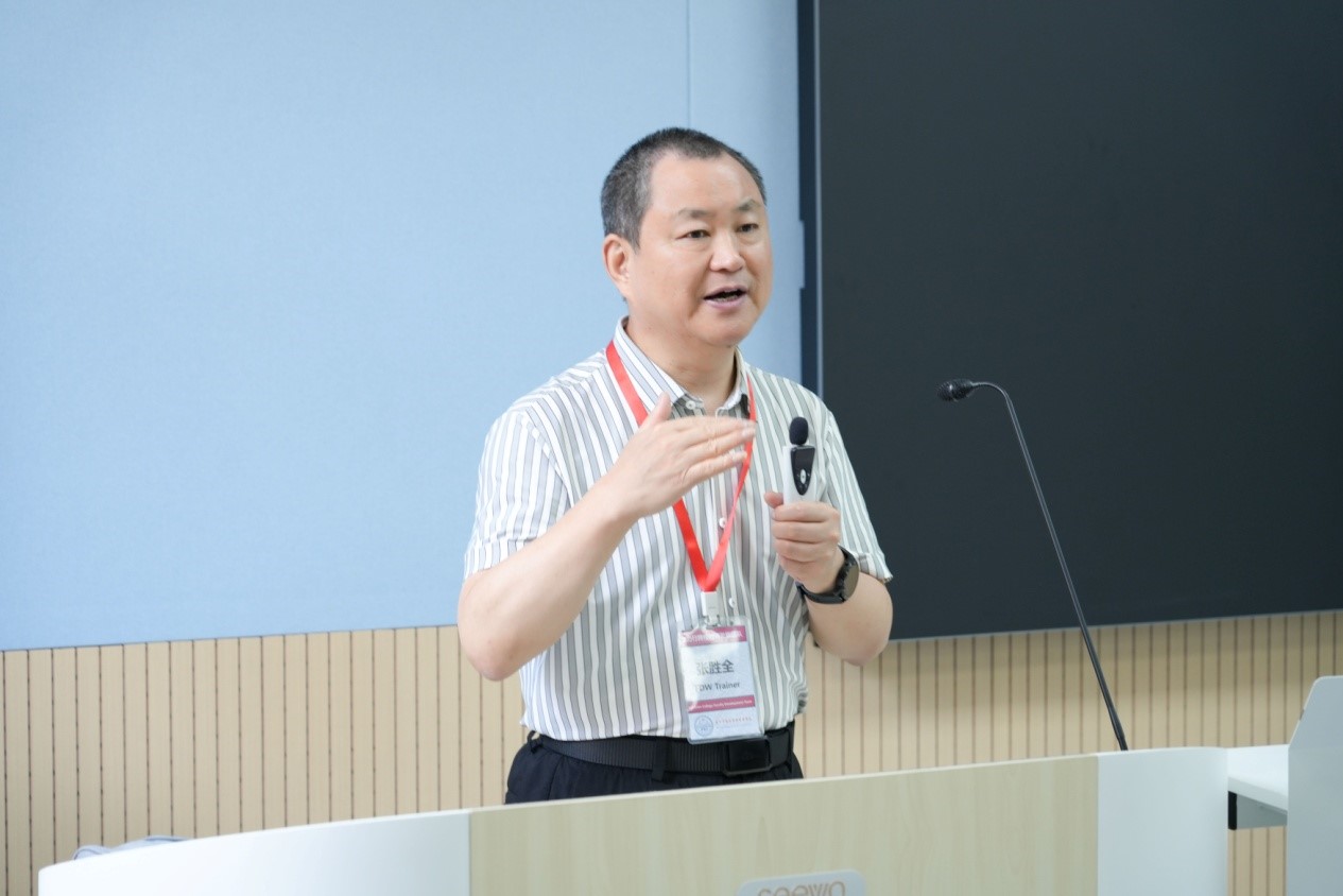6月26日,张胜全教授从描述课程基本信息、撰写学习目标、设计教学策略、制定过程性评价量规等方面讲解基于OBE理念的混合式财会课程设计。