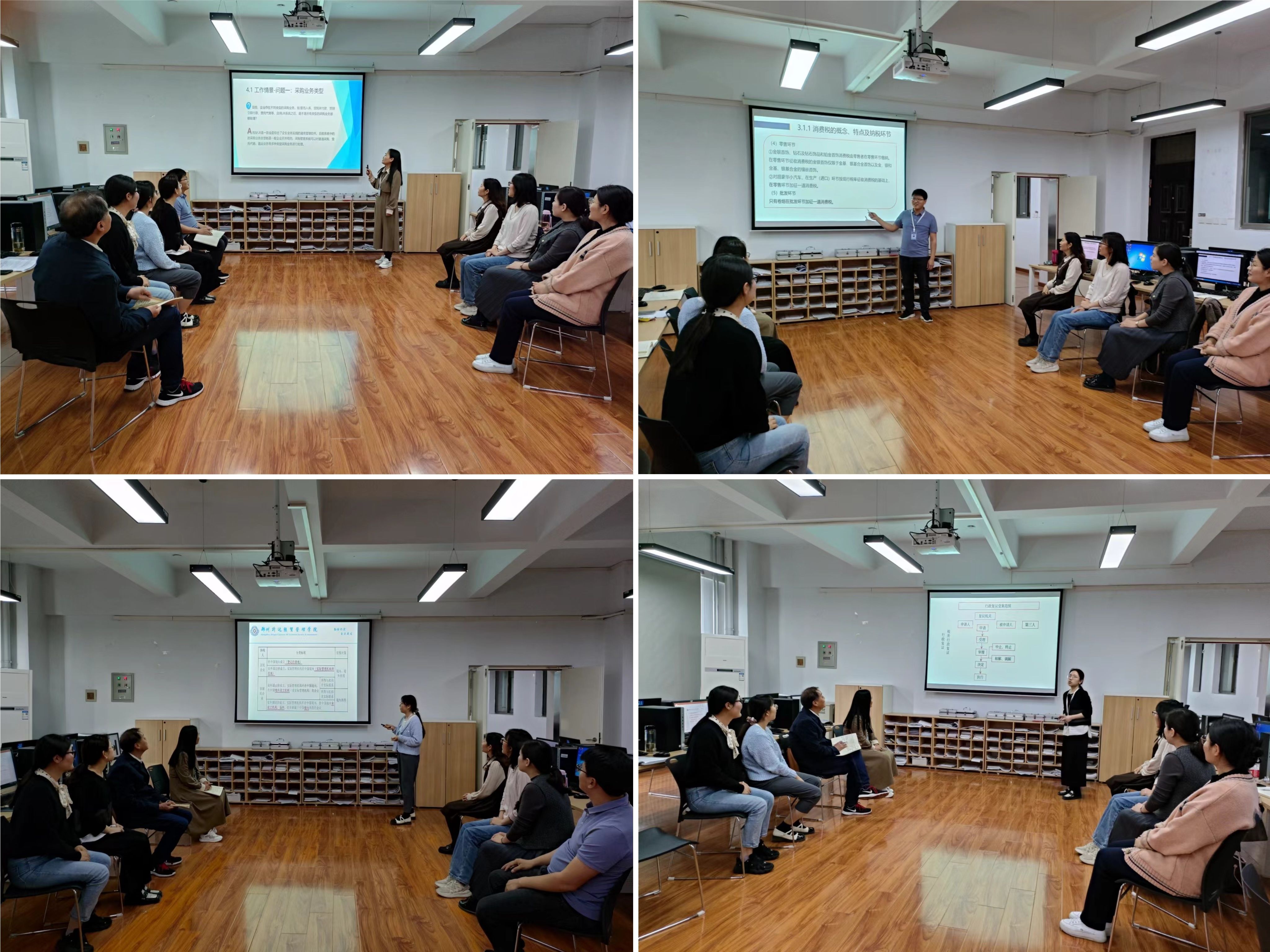 4位老师进行磨课后,教研室各位老师进行现场点评,在充分肯定讲课的优点的同时,中肯地对存在的不足,如存在准备不充分、现场慌张、线上线下融合不够、互动偏少、课程思政元素不突出等问题提出建议和解决方案。通过点评,四位老师表示收获很大,有效地提升了他们的整体授课认知能力和水平,为做好下步教学工作打下了坚实的基础。此次磨课活动的开展,对教研室各位老师也起到了提升教学水平和课堂教学能力的推动作用。纷纷表示,开展磨课活动是推进高质量课堂教学能力提升的重要抓手,今后要分步抓起,做到人人过关。