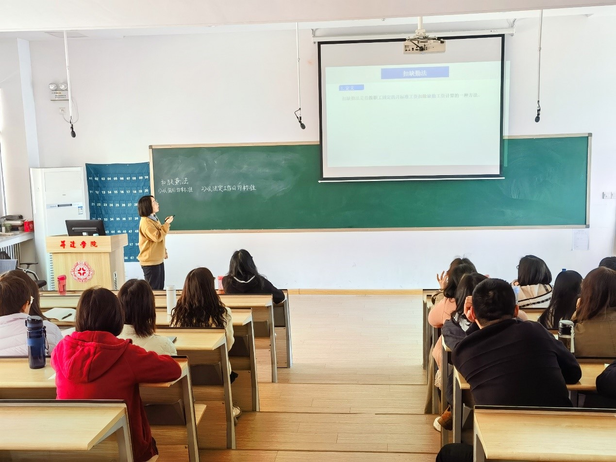接下来由占文雯和常明珠老师进行第二次课堂教学示范,两位老师分别对扣缺勤法和票据贴现进行讲授,讲授内容丰富,逻辑清晰,把数字化技术以及思政元素引用到课堂中,紧跟现代教育的步伐。最后让近两年新入职的老师和之前已经参赛过的老师对两位老师讲授中的优缺点进行点评。