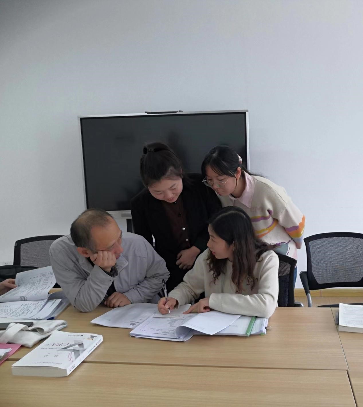 在检查活动中,教研室具有高级职称的张书翔、王燕、陈姣和王燕霞四位老师,分别担任组长,对本组组员的教学资料进行系统的审阅检查,对检查中发现的问题,一一进行反馈,并提出具体的改进要求,被检查老师深受启发和教益。在检查中,还对新进年轻教师进行帮扶指导,使他们在教学能力和技巧上有新的收获,有力推进课堂教学工作高质量开展。