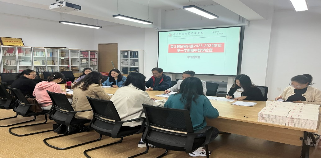 然后,审计教研室教师有序展开期中教学资料检查工作。每位教师检查两位老师的资料,老师之间进行了互查并相互交流了经验,从而汲取他人的长处,发现自己的短板。