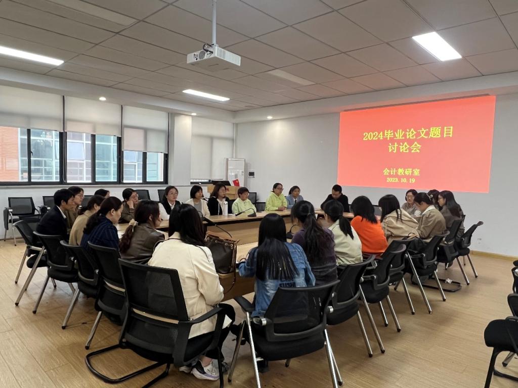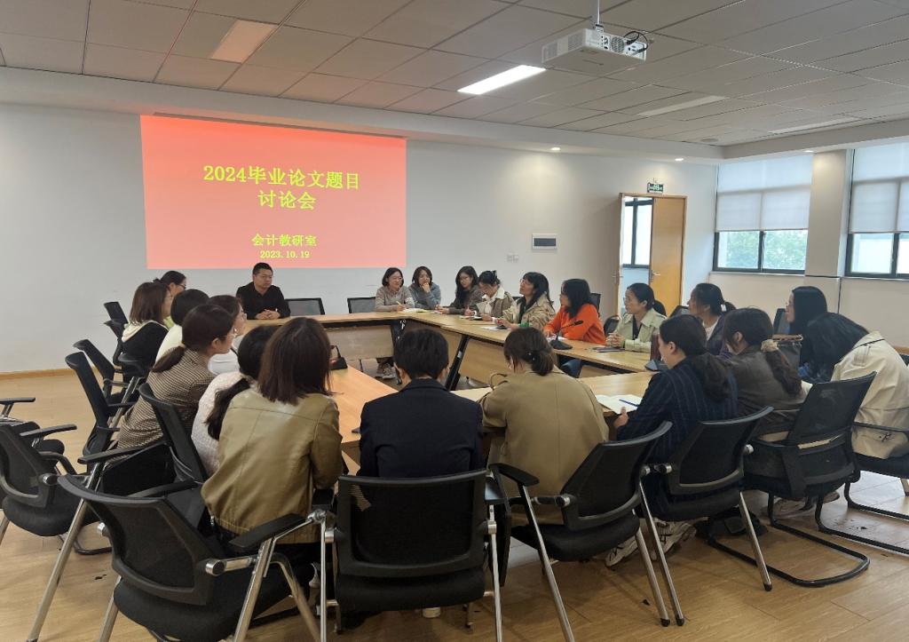 为进一步推进2024年论文选题相关工作顺利开展,365VIP英国上市官网会计教研室于2023年10月19日下午13:20在教学4号楼209办公室开展了2024年毕业论文选题研讨会,会议由会计教研室主任车伟娜老师主持,会计教研室全体老师参加。