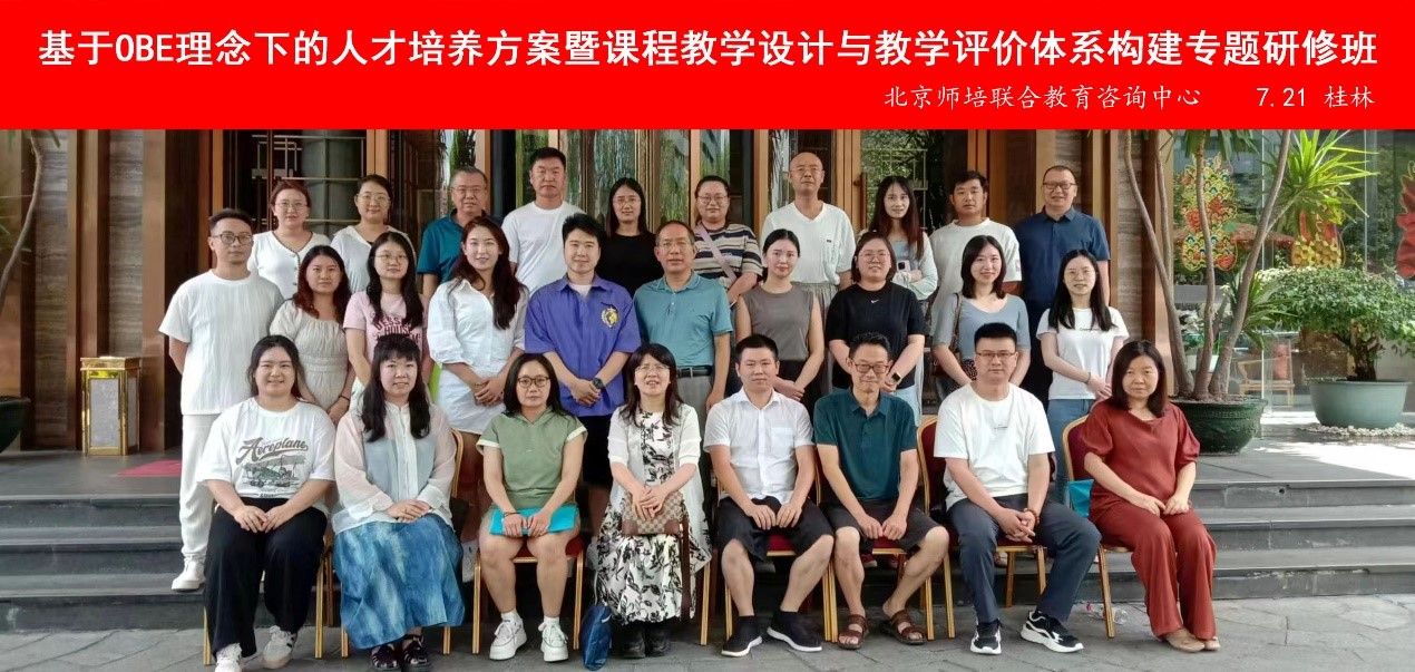 2024年7月21日-25日,365VIP英国上市官网杨朋伟、杨俊杰、郭阳老师在桂林参加由北京师培联合教育中心组织的“基于OBE理念下的人才培养方案暨课程教学设计与教学评价体系构建”专题研修班,此次培训由会务组成员黎老师主持。