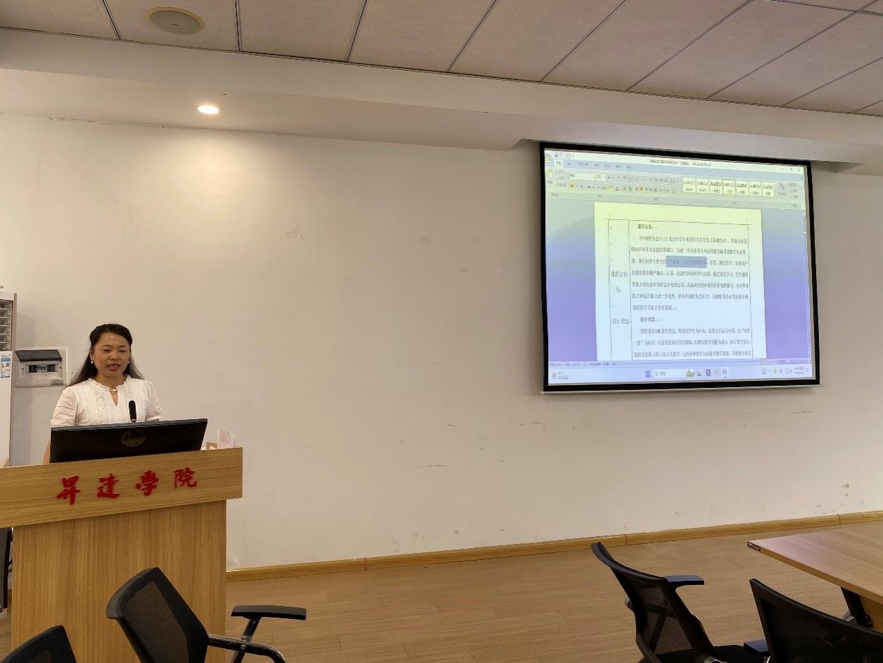 其次,田丽丽副教授介绍了《中级财务会计》课程在OBE理念下的教学实践。她提到,该课程的教学设计基于现代信息技术的应用,本学期的《中级财务会计》课程均在智慧教室授课,可以极大地丰富教学方式,提高教学效果。田老师还从课堂授课实况分享了学情分析的设计经验,强调了个性化发展的重要性。