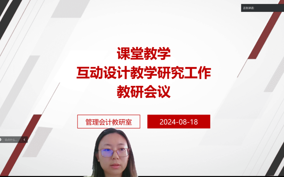 为了进一步提升课堂教学质量,优化师生互动方式,激发员工的课堂参与度,管理会计教研室于8月18日举办了一场关于“课堂教学互动设计”为主题的教学研讨会。本次研讨会旨在探讨如何通过创新教学方法,实现更加高效、生动和互动的课堂环境。