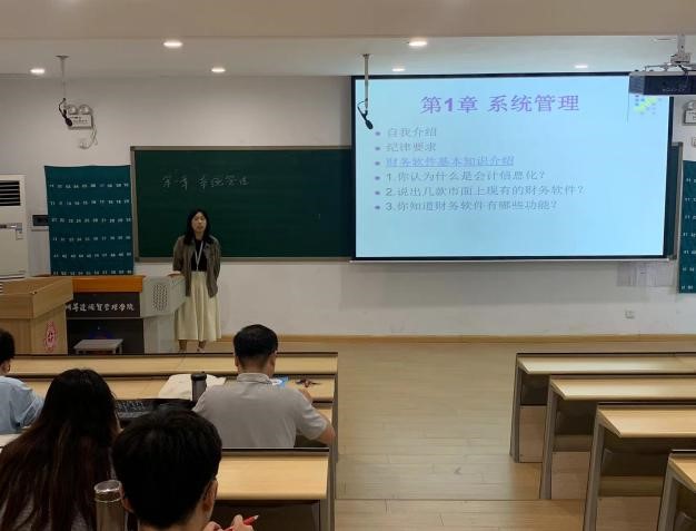 李桂英老师就《会计与信息化实训》课程的“系统管理”章节进行了实战教学,即时互动与提问的教学设计活跃了课堂气氛,也展示了李老师在授课过程中十分专业且极具亲和力的一面。