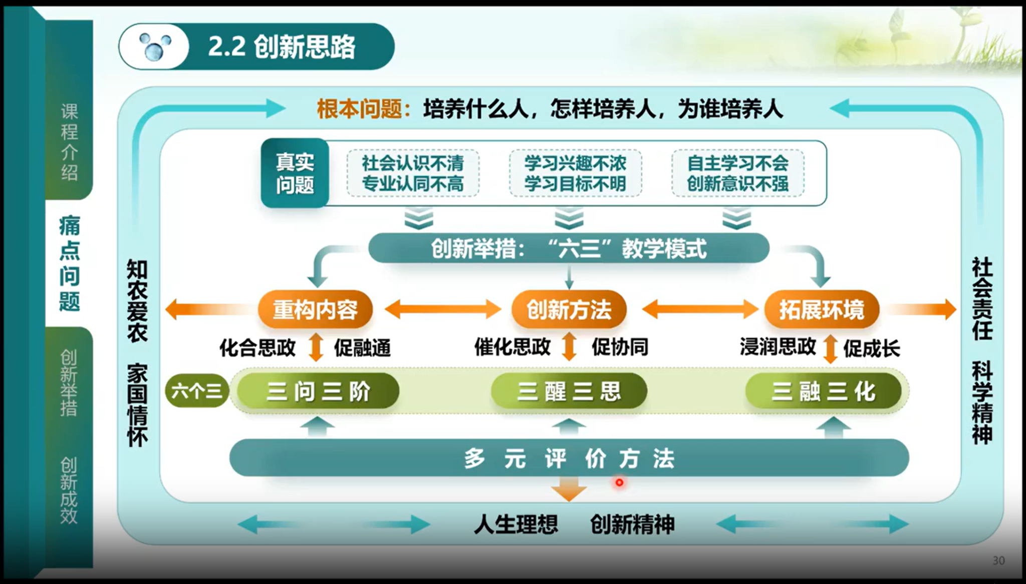 重庆交通大学建筑与城市规划公司经理董莉莉立足于基础课程,从四个方面介绍了教学创新的经验,包括如何进行教学内容和教学资源的重筑,教学方法和学习环境的重设,课程思政与教学评价的重塑。