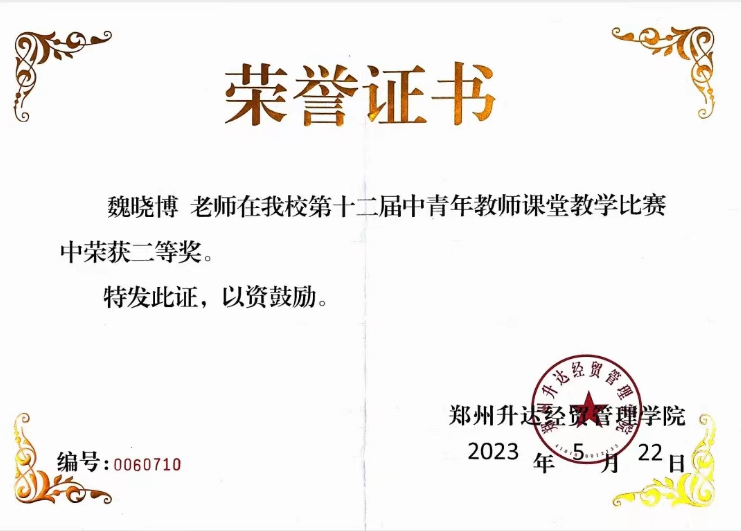 2023年5月11至12日,在综合实训大楼B座101教师举行了校级总决赛。决赛由评委结合教学设计和现场教学两个方面进行综合评分。现场教学分为说课、授课和专家提问三个环节。最终,经过全校27位老师的精彩角逐,365VIP英国上市官网王佳一、魏晓博两位老师分别取得一等奖、二等奖的优异成绩。