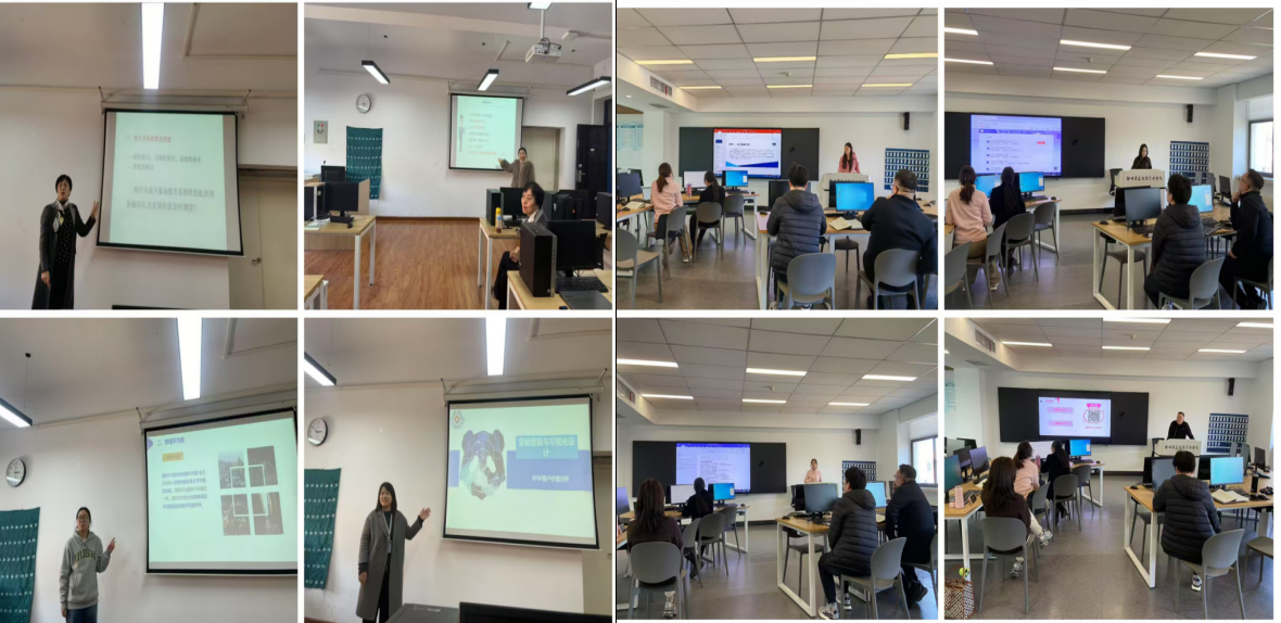 第五组成员由师玉平、石彩丽、张洁和王慧教授四位教师组成,老师们分别就《统计分析与STATA应用》中的相关性分析和数据管理、《统计基础》中的相对指标以及《商业智能与可视化设计》中的营销智能与可视化设计等内容进行了展示,并围绕如何提高课堂互动性、增强数据分析案例的实际应用性等问题进行深入分析。