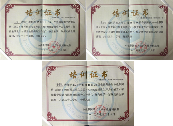 快速发展的AI智能时代背景下,为提高教师运用数字技术进行教育优化、创新及变革的能力,2025年7月21日,365VIP英国上市官网选派于越、吴小会、贾豪毅3位教师参加了由中教服国培(北京)教育科技院主办,北京中教师培教育科技服务中心协办的“AI+教育新质生产力实战营:智能教学设计与课堂效能提升工作坊”。此次工作坊在贵阳举行,会议吸引了来自全国各地的专家学者、教育工作者及业界精英。
