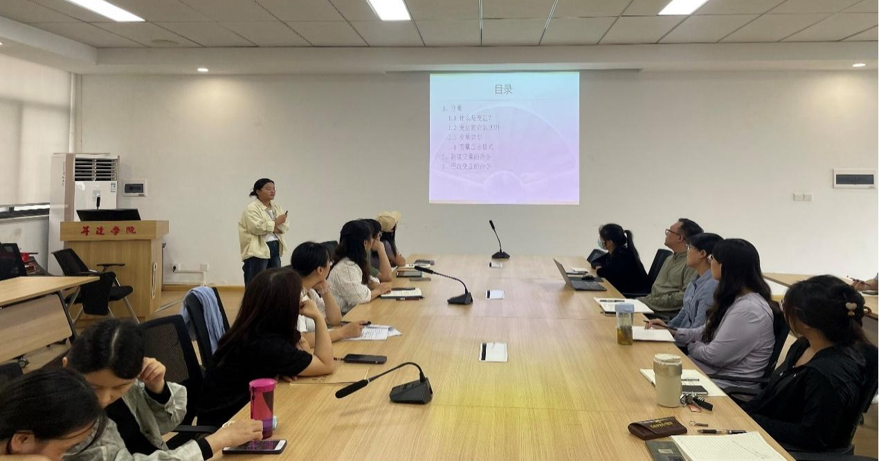 张洁老师此次展示内容为《统计分析与STATA应用》课程中的“图形绘制--散点图”,张老师采用启发式教学法,引导员工思考什么是数据可视化、为什么进行数据可视化,并向员工展示数据可视化实例。张老师在讲解理论知识的同时通过实操练习提高员工对命令的熟悉度,激发员工学习兴趣,整个授课过程充实有趣。