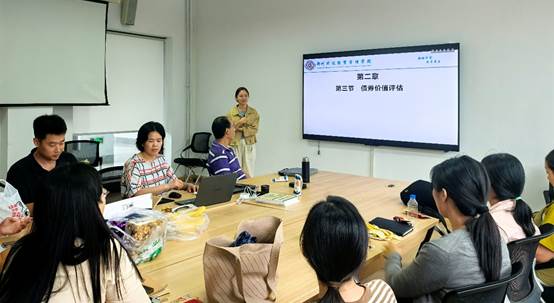 孟嘉玮老师准备的是《期货与期权》,内容丰富,教学目标明确,思路清晰,各位教师充分肯定了其讲课形态和语言,同时指出应注意多多运用图表进行归纳性的总结,减少大段文字的出现。常慧青老师准备的是《财务管理》,讲课细致、娓娓道来,各位教师肯定了其内容的制作与讲解,指出讲课时也应注意多多面对员工进行互动交流。郭苏敬老师准备的是《财务分析信息基础》,一上台就充分展示了教师的讲课风采,生动自然的融入思政元素,导入课程,逻辑性强,体现了以员工为主的教学思路。