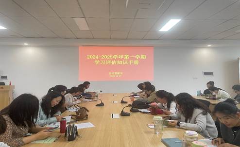 在学习过程中,刘静淑老师带领老师们对照应知应会手册中的内容,从“评估常识”、“公司概况”和“热词解读”三个部分对手册内容进行了全面系统地学习,