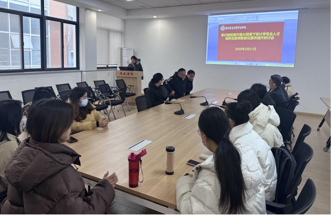 促进人工智能技术与审计教育的深度融合,审计教研室于2025年2月21日在4号楼209室召集全体教师举行了专题研讨会。本次会议聚焦于DeepSeek、ChatGPT等人工智能工具在审计人才培养及教师数字化能力提升方面的应用,并进行了深入的交流与探讨。