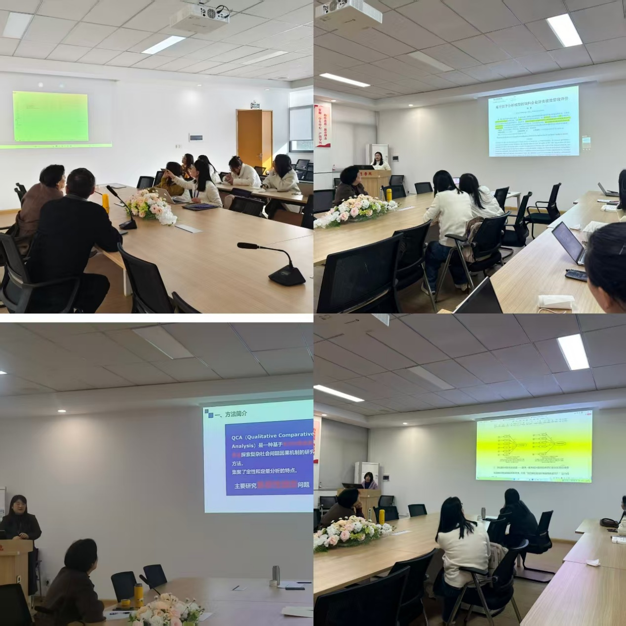 本次研讨会共有四位老师进行分享。首先赵晓庆老师为大家讲解了Endnote软件的操作与应用。赵老师从指导员工毕业论文和日常科研过程中经常遇到参考文献排版问题出发,为大家展示了如何下载参考文献,并利用Endnote软件进行参考文献排版。其次刘金瑞老师以《基于因子分析模型的饲料企业财务绩效管理评价》文献为例,向大家展示了如何利用SPSS软件做因子分析。然后宋丽老师以第十届定性分析(QCA)方法工作坊培训的学习内容为基础,为大家分享了fsQCA软件的操作、应用前沿和发刊建议。最后,马会娟老师以自己的研究成果为基础为大家讲解了结构方程的构建及AMOS软件结果的解读。